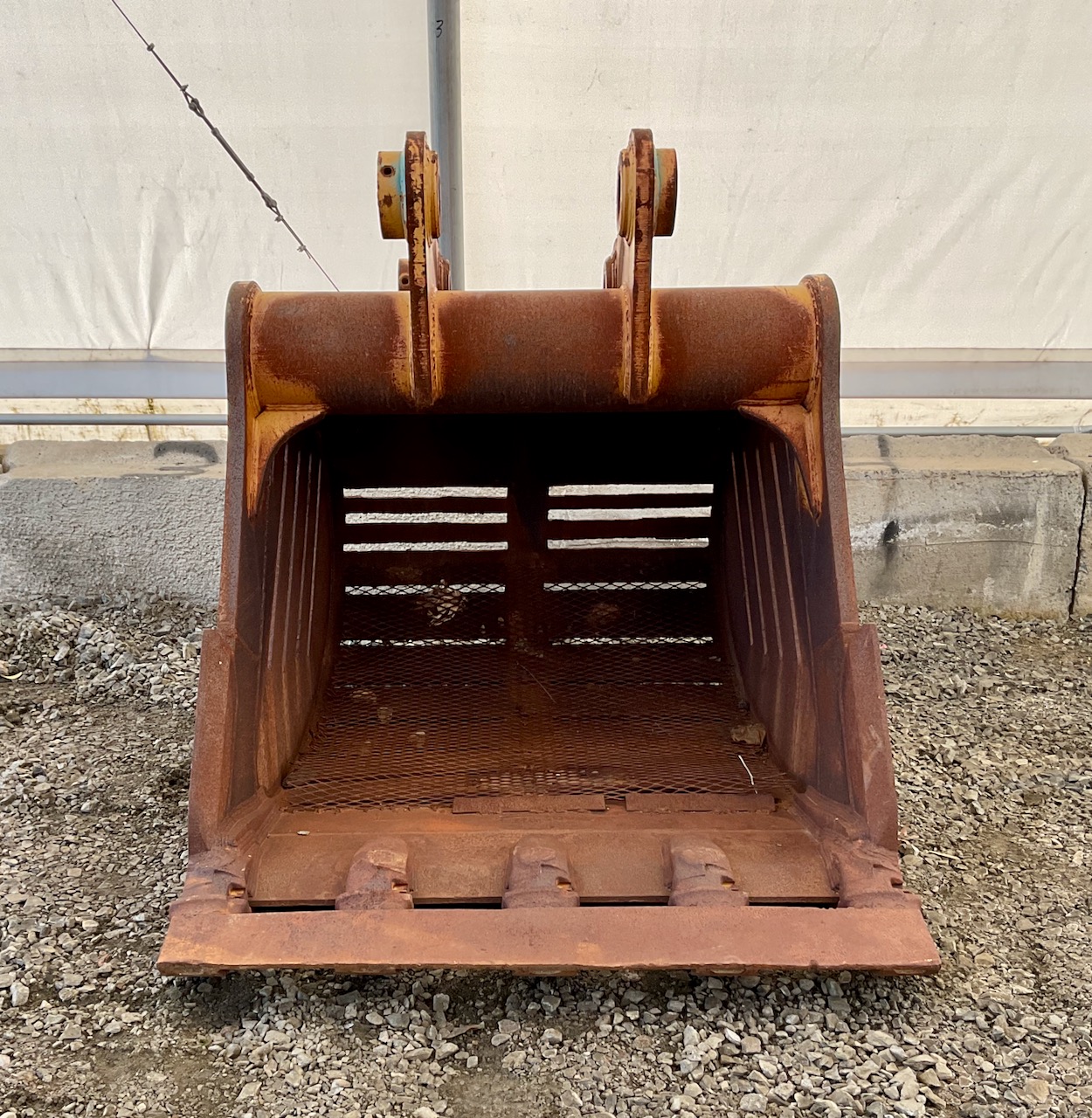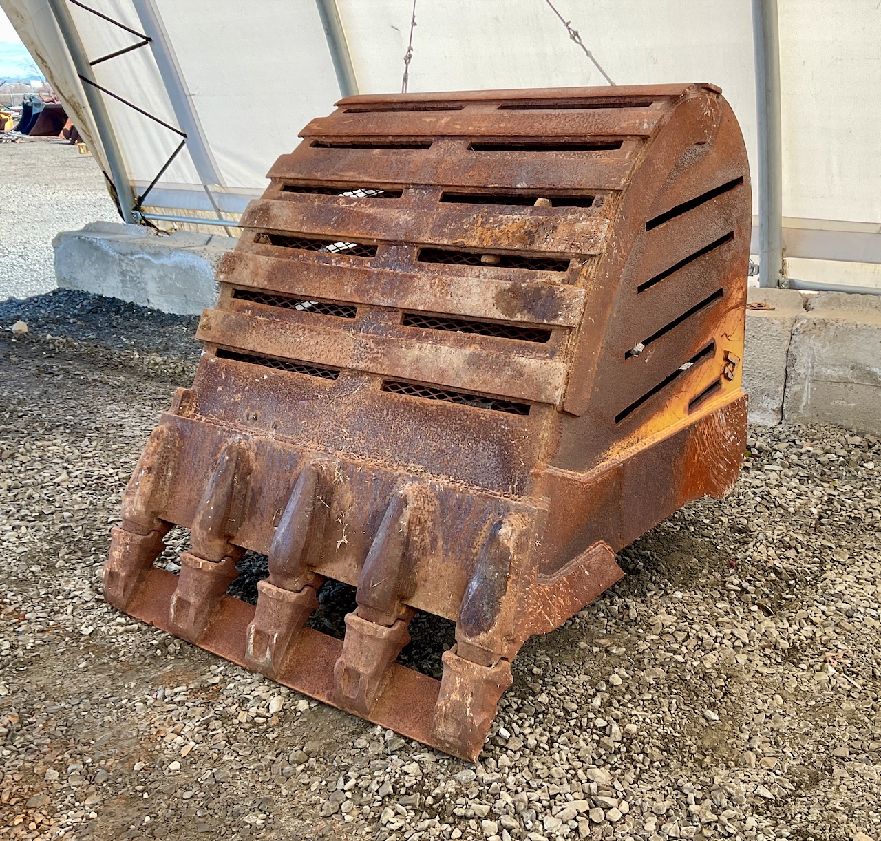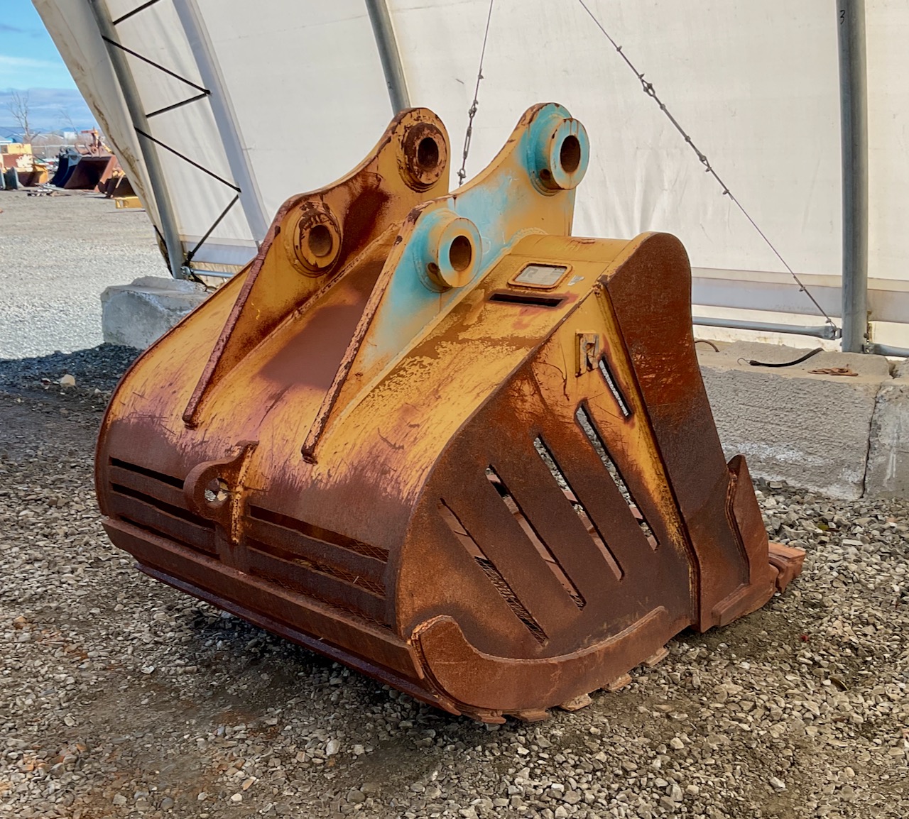 2.44 yard capacity, cutting edge welded to the teeth, lifting eye, slots cut in sides, bottom, and back